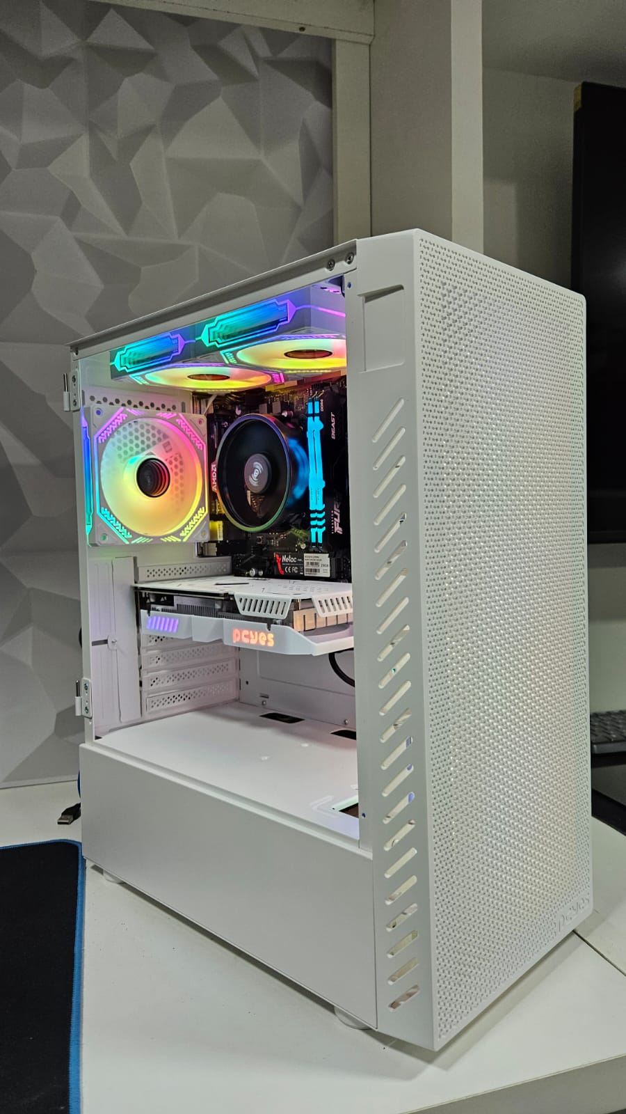 Setup com visual branco + RGB e ótimo desempenho para jogos em Full HD, ideal para quem quer performance e estética no mesmo PC! 🤍✨